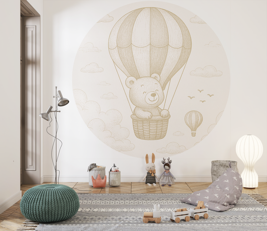 Behangcirkel Beer in Luchtballon