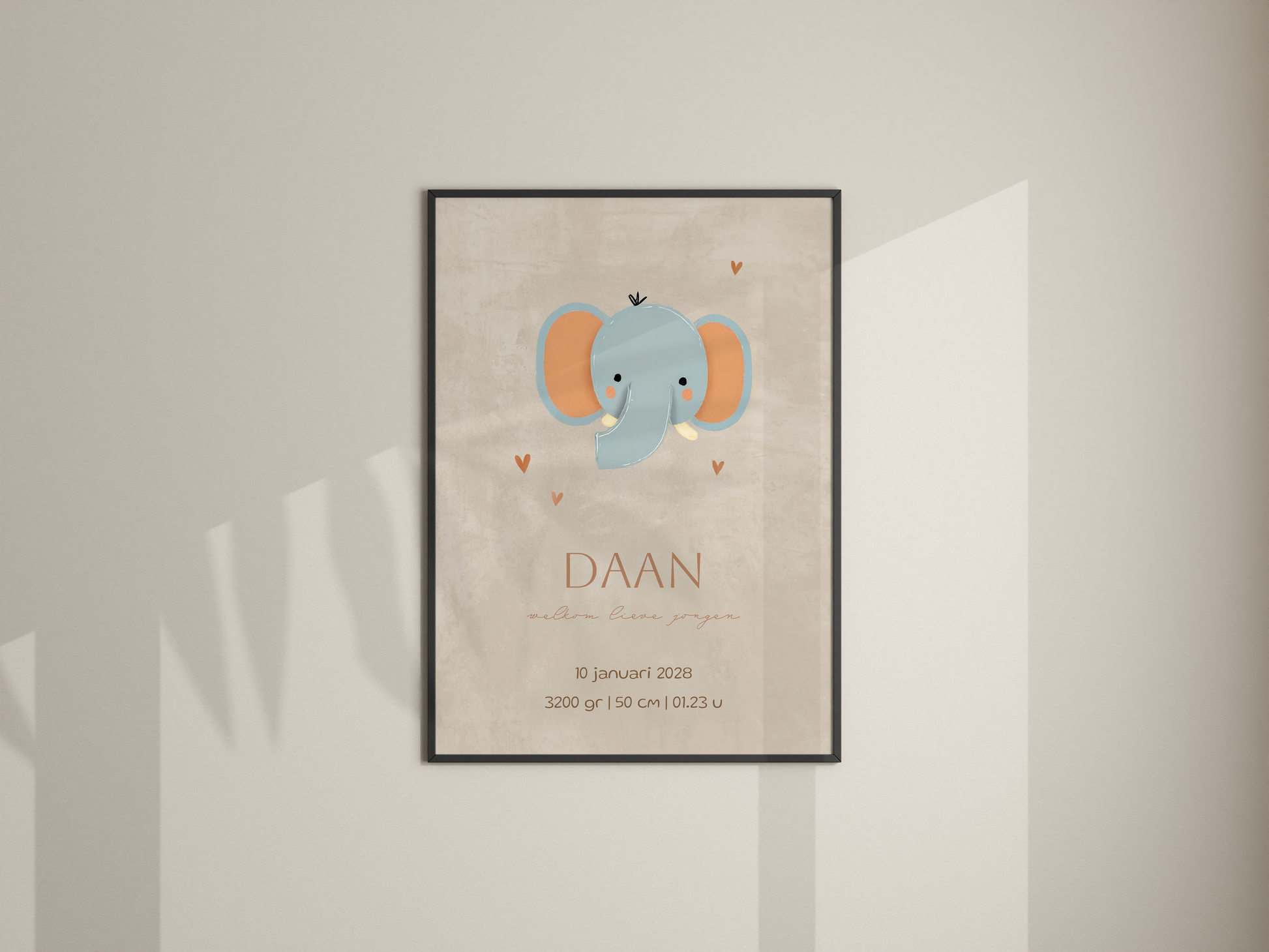 Geboorteposter jongen met olifant